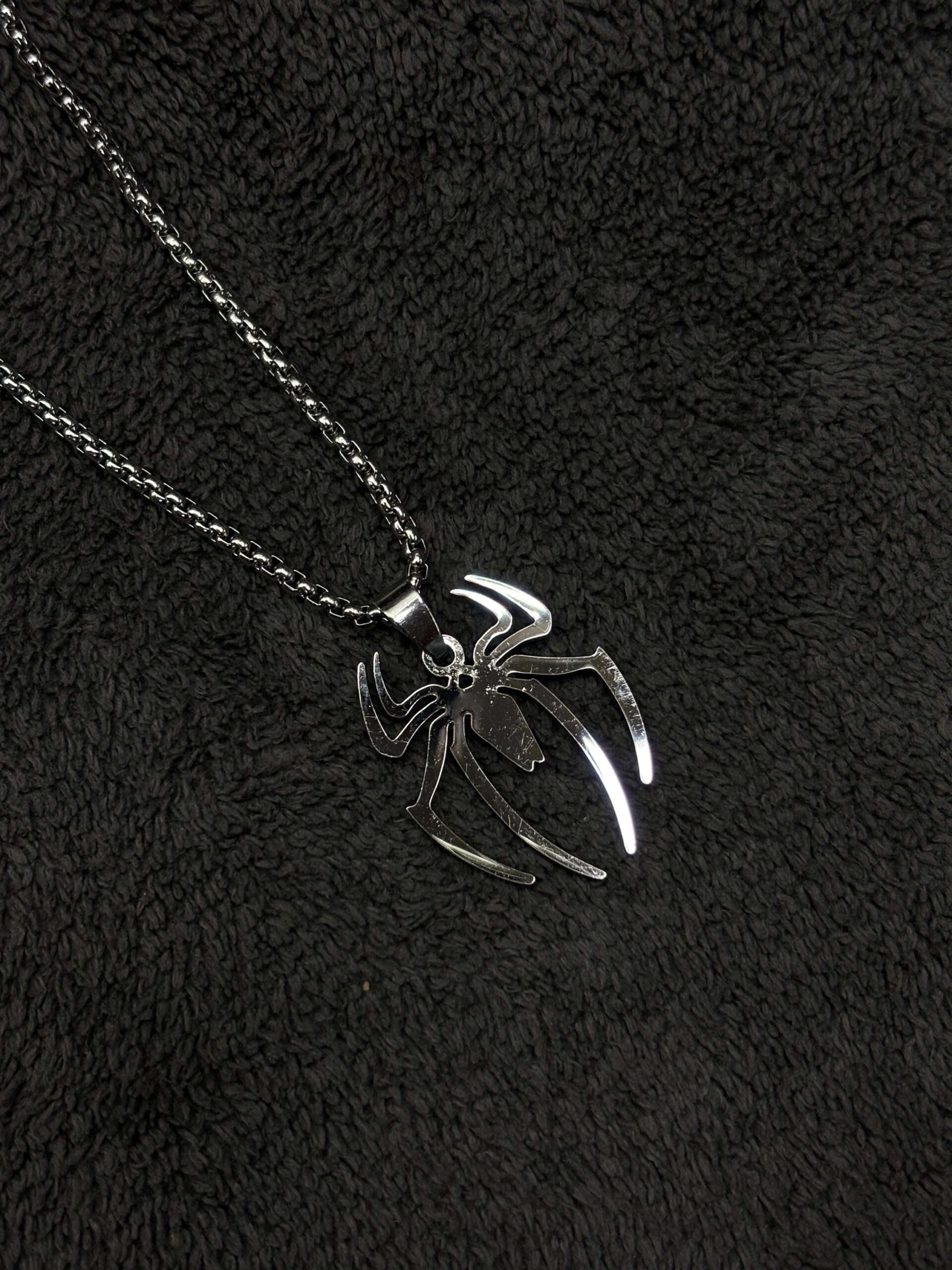Embrace the dark side of nature with the Venomous Widow Necklace. This striking pendant features a minimalist yet menacing spider design, crafted from highly polished stainless steel for a smooth, reflective finish. The eight pointed legs give the piece a dynamic and aggressive silhouette. Suspended from a sturdy, matching chain, this necklace is the perfect subtle statement piece for those who favor gothic, punk, or arachnid-inspired styles. It symbolizes cunning, power, and dark femininity or masculinity.